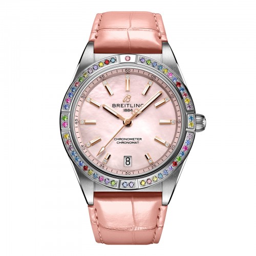 À propos de la Breitling Chronomat Automatic 36 pour femme avec bracelet en cuir rose des mers du Sud G10380BB1K1P1