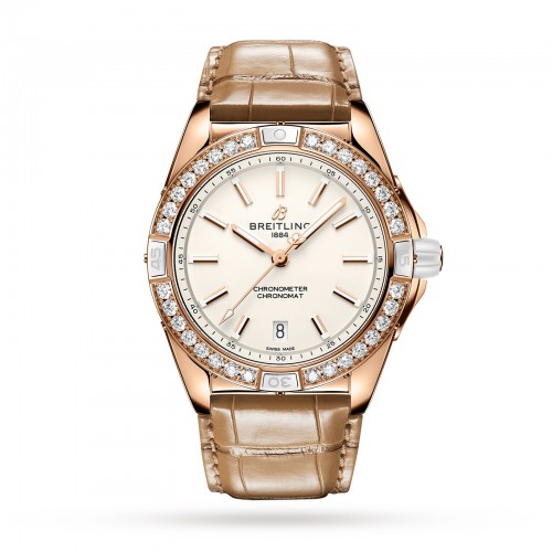À propos de la Breitling Super Chronomat Automatic 38 Origins blanche avec bracelet en cuir marron en or rose 18 carats R17356531G1P1