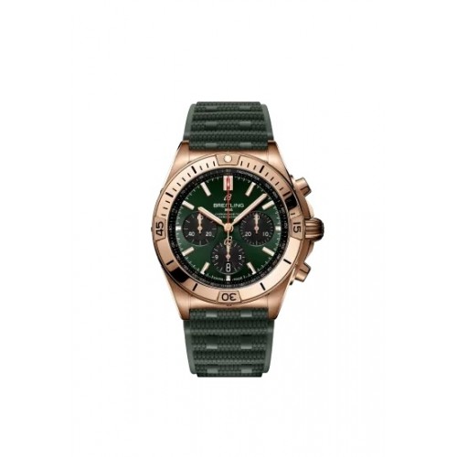 Réplique de Breitling Chronomat B01 42 UB0134131L1S1 Acier inoxydable Or rouge Bracelet en caoutchouc vert