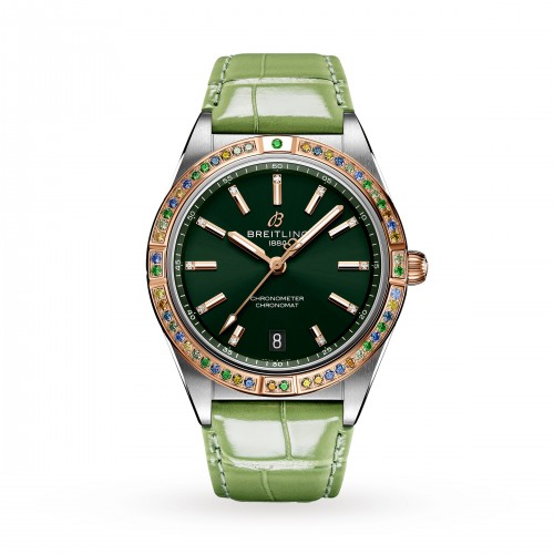 À propos de la Breitling Chronomat Automatic 36 pour femme avec bracelet en cuir vert mer du Sud U10380611L1P1