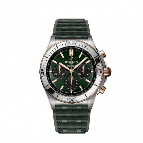 Réplique de Breitling Chronomat B01 42 UB0134131L1S1 Acier inoxydable Or rouge Bracelet en caoutchouc vert
